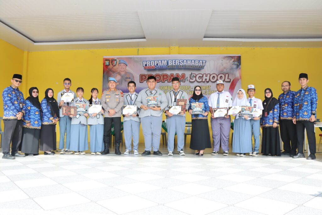 BATAM – Polda Kepulauan Riau melalui Bidpropam melaksanakan kegiatan Propam Bersahabat Goes To School di SMA Negeri 3 Batam, Senin (17/11/2025). Kegiatan ini dirangkaikan dengan Upacara Bendera dan Lomba Cerdas Cermat Pengetahuan Umum tentang Polri yang diikuti siswa-siswi SMA dan SMK se-Kota Batam.