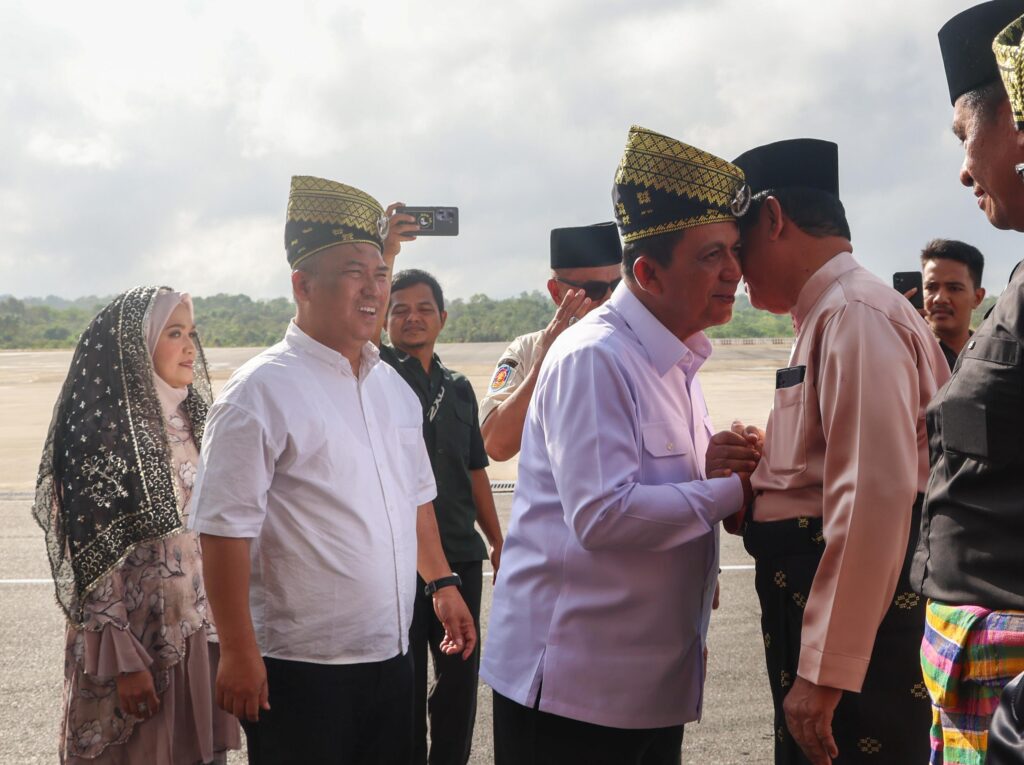 Gubernur Ansar dan Wakil Gubernur Nyanyang Haris Pratamura tiba di Bandara Raja Haji Fisabilillah (RHF) sekitar pukul 08.20 WIB sebelum langsung menuju Gedung LAM Kepri untuk mengikuti serangkaian prosesi adat.